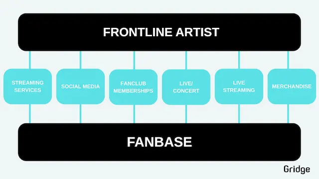 D2F(Direct to Fan)は、アーティストやマネジメントがファンと直接つながるモデルです。CDショップやDSP、代理店などの中間構造に依存せず、公式EC・SNS・メール・CRMなどのツールを通じて、ファンとの継続的な接点を自分たちで保つ設計です。