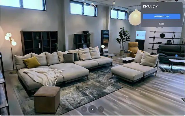 - バーチャルショールーム:店頭と同様に空間全体を見渡しながら複数モデルを自由に回遊可能