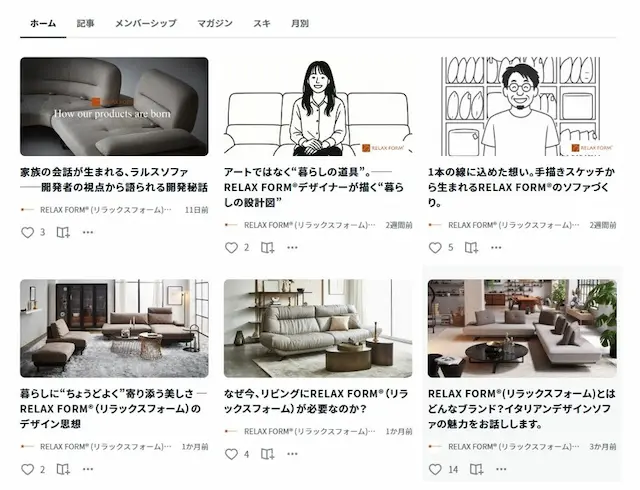 RELAX FORM®では、ブランドの魅力や開発の裏側、ライフスタイル提案などを発信する公式noteも運営しています。ECサイトとあわせて、ぜひご覧ください。