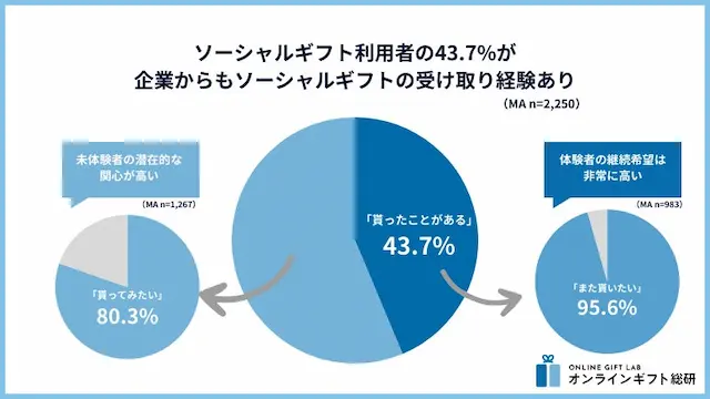 ソーシャルギフト利用者の43.7%が企業からも受け取り経験あり