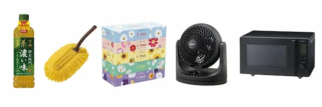 - 汎用機器・備品・消耗品:飲料、清掃用品、ティッシュ、家電など