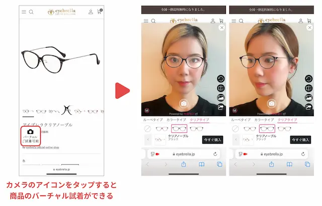 アイブレラの販路の主軸はテレビ通販で、テレビを見てオンラインショップにアクセスする顧客が多い中、「試着できないから不安」といった理由で離脱してしまうケースが少なくありませんでした。また、実店舗は全国に1店舗のみで、遠方の顧客が購入前に試着できる機会が限られていました。