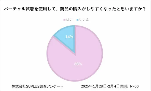 - 86%が「バーチャル試着を使用することで商品の購入がしやすくなった」と回答