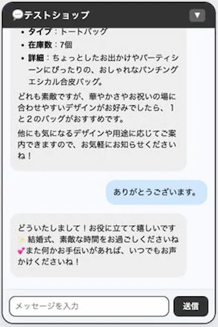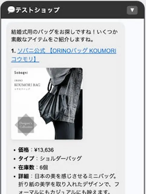 商品レコメンド | 用途・予算・素材・色味から候補を自動提示 |