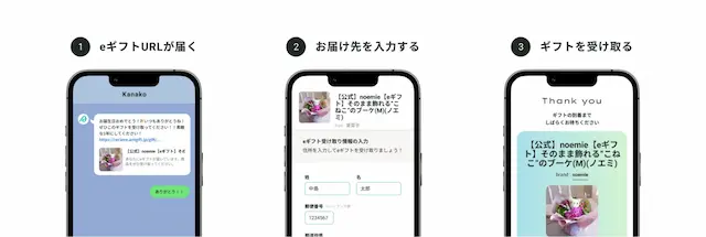 相手の住所を知らなくてもnoemieのギフト商品をLINEやメールでギフト可能に