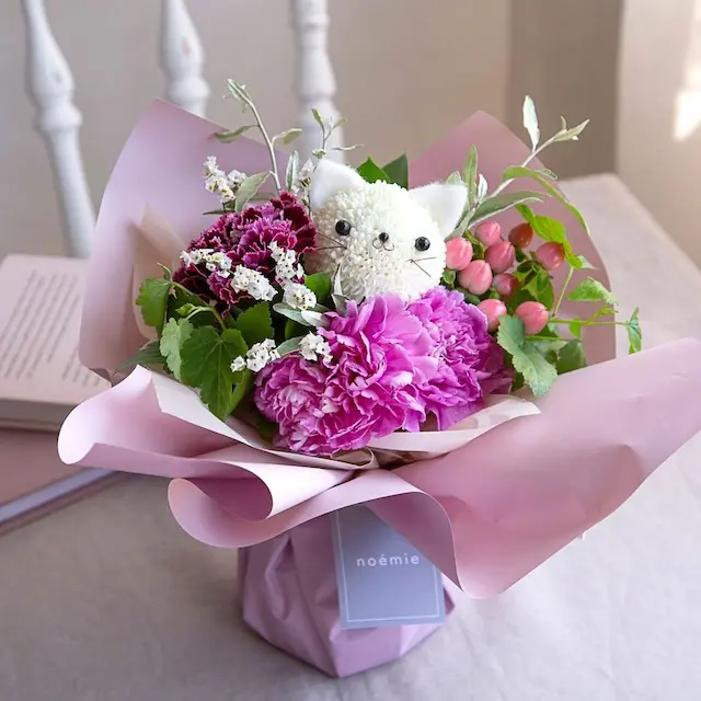 【eギフト】そのまま飾れる“こねこ”のブーケ(M)