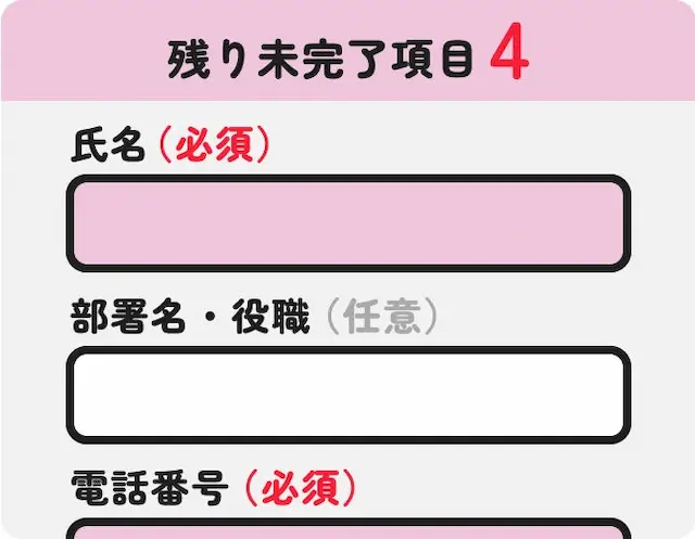 未入力の必須項目数をリアルタイムでカウントダウン表示し、入力完了への意欲を高めます。
