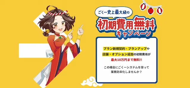 各種オプションの追加、システムで管理する店舗数の追加、上位プランへの変更時に発生する初期費用が最大10万円まで無料