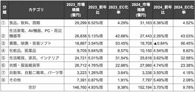 2024年日本のEC市場が3大ECモールに牽引され前年比13.0%増