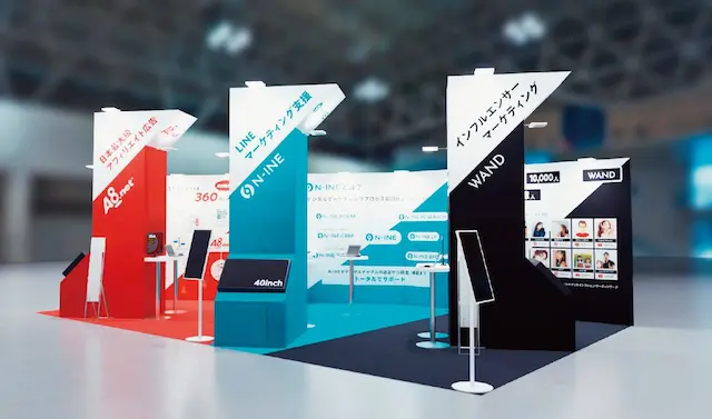 今回の出展内容としては、国内最大級のアフィリエイトサービス「A8.net(エーハチネット)」、LINEマーケティング支援サービス「N-INE(ナイン)」、インフルエンサーマーケティング支援サービス「WAND(ウォンド)」の3事業を紹介します。