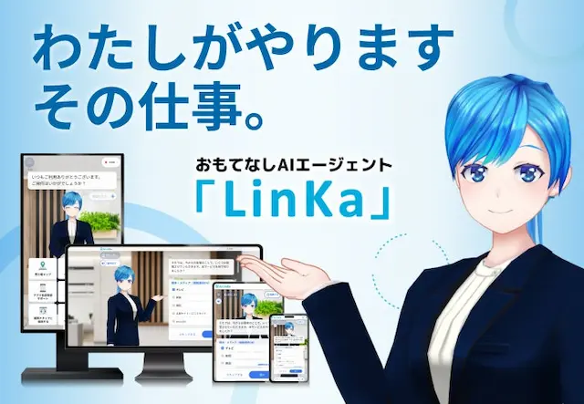 アバターや生成AIなどのAI技術を活用したオンライン接客サービスです。マルチプラットフォームに対応し、AIの活用やリモート接客により、WEBサイト上でのオンライン接客による売上・契約増加や、問い合わせ効率の向上、店舗や受付の無人化・省人化、人手不足の解消に貢献します。アバターの姿で遠隔地から仕事が可能なアバターワーカーという新しい働き方や雇用を生み出しています。