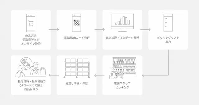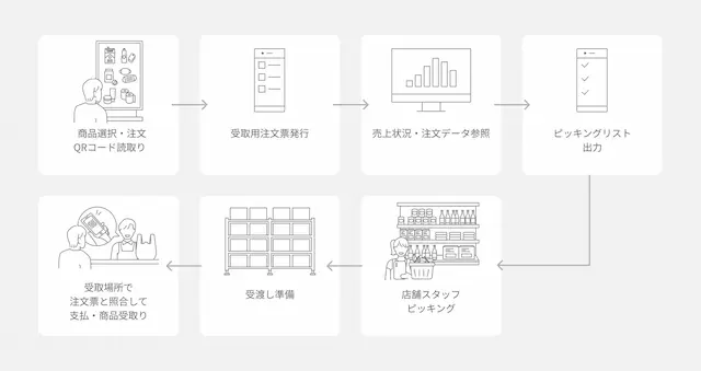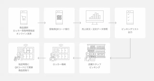 「Bopis Cloud」は、BOPIS(※)導入・実現のためのシステムプラットフォームです。モバイルオーダーに必要な機能をワンストップで提供し、レジ・POS、ロッカー等の周辺システムとも連携可能で、現行システムを活かす形での導入が可能です。これまで、ロッカー、レジ・POSシステムについては数社と連携実績があり、システム連携に柔軟に対応しています。