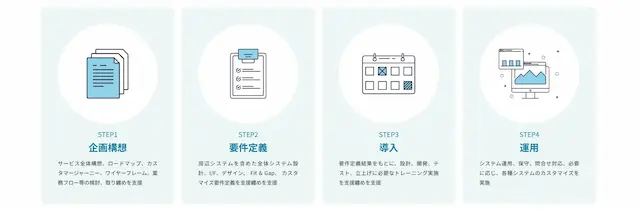 『Bopis Cloud』導入に際しては、確実なサービス立上げを実現に向け、構想・要件定義・導入・運用、まで一気通貫でご支援します。