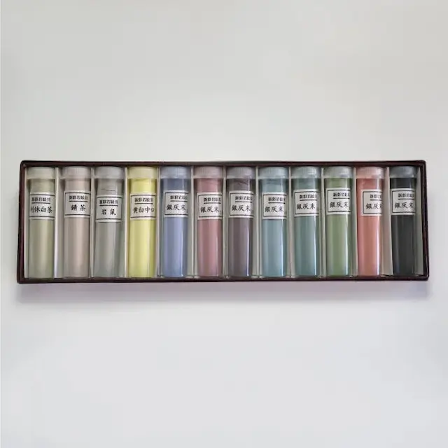 セットには、一番細かく扱いやすい11番のみを使用しており、水干絵具などと組み合わせることで、作品により深みと厚みを加えることができます。