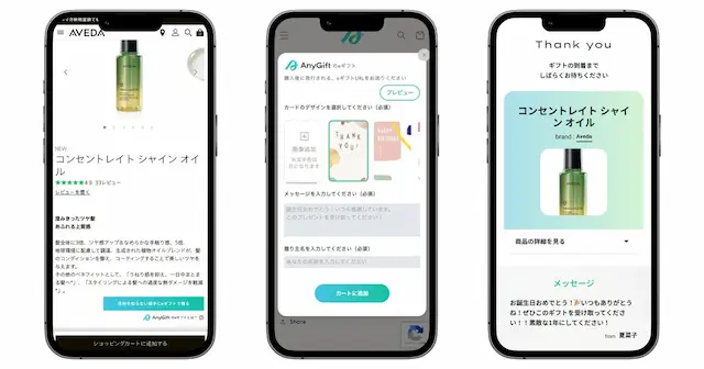 こうした状況から、同社はこのたび「AnyGift」を導入しました。住所を知らなくても贈ることができるeギフトサービスを活用することで、より気軽に「アヴェダ」の製品をギフトとして利用できる環境が整いました。今回の取り組みにより、「大切な人へ、特別な体験を届けたい」というお客様の思いを実現しつつ、さらに多くの方々に製品が届く機会が広がることが期待されます。