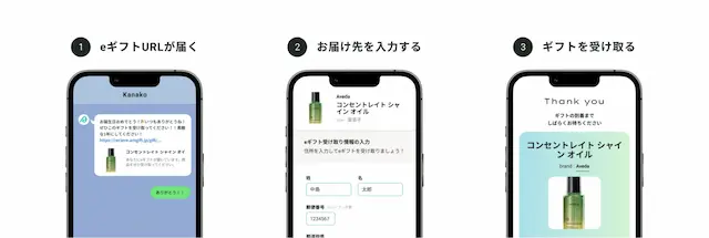 eギフトURLから住所を入力いただくだけで対象商品が届きます