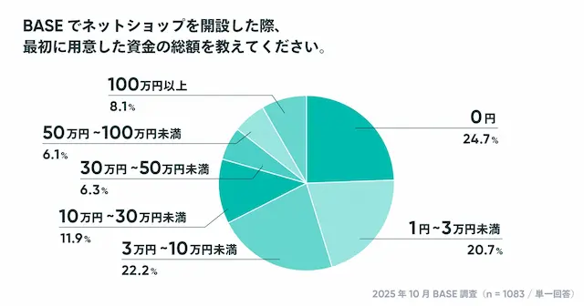 BASEでネットショップを開設した際、最初に用意した資金の総額を教えてください。