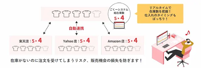 GoQSystemの在庫連携機能は、複数モール・複数倉庫の在庫をリアルタイムで一元管理できるクラウドサービスです。