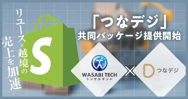 2025年11月には株式会社 HEAVEN Japanとの協業をスタート。Shopifyの力を最大化し、”売れる仕組み”を構築する「つなデジW」共同パッケージの提供を開始します。HEAVEN Japan社が提供する顧客エンゲージメント向上のための仕組みと総合支援サービス「つなデジ」に、ワサビテックコンサルタントのShopify運用およびリユース・越境分野での実績と知識を組み合わせたサービスです。