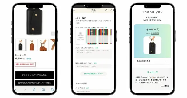 AnyGiftは、相手の住所を知らなくてもLINEやメールで商品を贈ることができる“eギフト機能”を、ECサイトに組み込むことができるサービスです。この度の当社のAnyGiftの提供により、「IL BISONTE(イル ビゾンテ)日本公式オンラインストア」にて人気の商品がeギフトとして贈れるようになります。