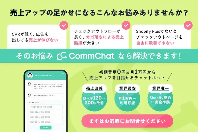 Shopifyで決済CVRを向上させるチャットボット「CommChat」