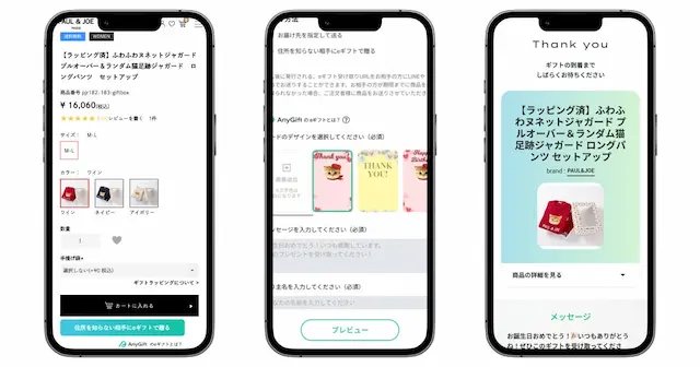 そこで、お客様にもっと気軽にPAUL & JOEルームウェア公式サイトの商品をプレゼントとしてご利用いただきたいという思いから、AnyGiftの導入を決定いたしました。