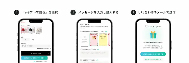 - 購入が完了すると、eギフトの受け取りURLが発行されます。LINEなどの各SNSやメールでURLを伝えることでeギフトを贈ることができます。
