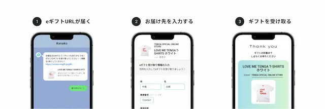 ■住所を知らない相手にも、TENGAの商品をLINEやメールで贈れる。