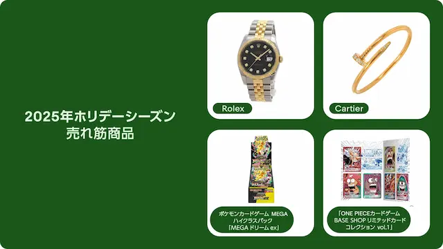 ギフトシーズンに入ると、RolexやCartierなどの高単価の時計やジュエリーのニーズが高まる傾向があります。それに加え、9万ドルを超えるPatek PhilippeやHermèsのバーキンも通常よりも増加傾向にあります。