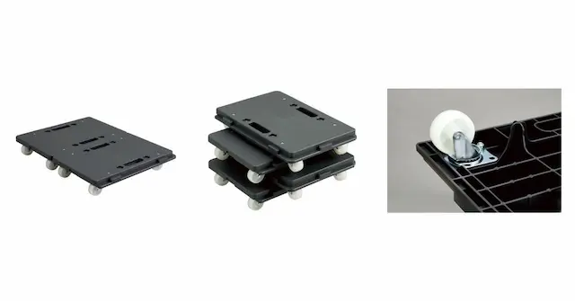 大小のサイズ展開に加え、同タイプであれば縦横に連結したり、積み重ねて収納したりすることが可能です。また、車輪が歪みにくいナイロンキャスターを採用。長時間荷重をかけ続けても変形しにくい、高い耐久性があります。