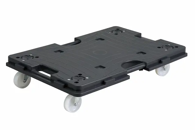 この度、台車の樹脂板部にカウネットが回収した使用済みのプラスチックを一部原料として使用した樹脂平台車を企画・開発しました。大・小のラインナップを出すことで、小回りが必要な場所や倉庫等の広いスペースでも使用可能な展開としています。物性表に基づき、耐荷重は100㎏を維持しつつ、環境に配慮した商品になることを目指しました。ぜひたくさんの現場でお役に立てると嬉しいです。