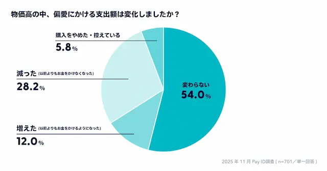 ・物価高の中、偏愛にかける支出額は変化しましたか?