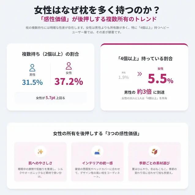 なぜ女性は枕を多く持つ?「機能 × 感性」のニーズが加速