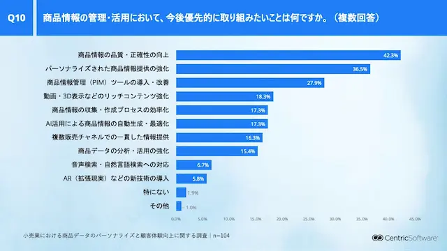 小売企業は、CX向上に直結する商品情報の品質改善とパーソナライズ強化を、今後の最優先課題として捉えている