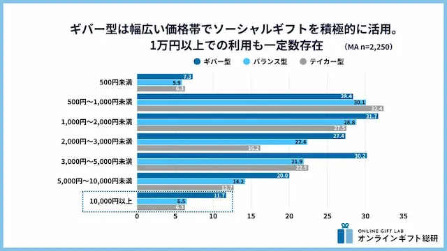 2. ギバー型は幅広い価格帯でソーシャルギフトを積極的に活用。1万円以上での利用も一定数存在