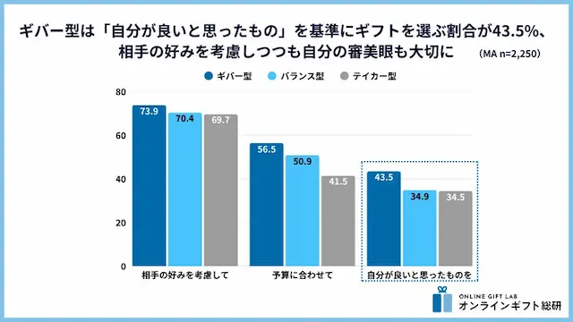 3. ギバー型は「自分が良いと思ったもの」を基準にギフトを選ぶ割合が43.5%、相手の好みを考慮しつつも自分の審美眼も大切に