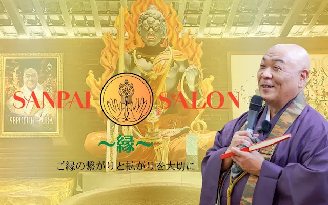 SANPAIサロンは、現代のかけこみ寺として阿闍梨である山平和尚が高野山に伝わる密教を活かしながら、メンバーひとりひとりと向きあい、ご縁を大切にし、自分自身が苦難を乗り越え幸せを具現化するために、体験等を通して開運法を学び成長していく方法を獲得することを応援します。