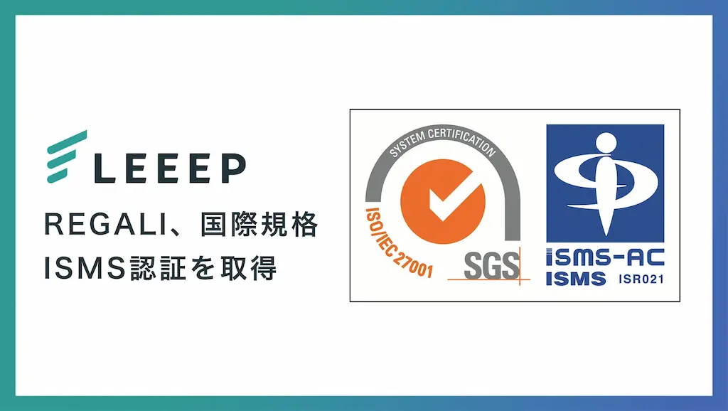 株式会社REGALI(本社:東京都渋谷区、代表取締役:稲田光一郎)は、この度、情報セキュリティマネジメントシステム(ISMS)の国際規格である「ISO/IEC 27001:2022」の認証を取得したことをお知らせいたします。この認証は、当社が提供するECサイト向けCXプラットフォーム「LEEEP」を含む、REGALIの法人向けソフトウェア事業全体において、情報セキュリティ管理体制が国際基準に適合していることを第三者機関により認められたものです。