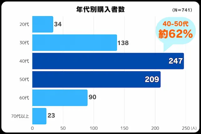 分析の結果、購入者の中心は40〜50代で、全体の約6割を占めていることがわかりました。セルフでヘッドシェービングを行うスタイルが、中高年層においても日常的な身だしなみの一つとして少しずつ浸透している様子がうかがえます。