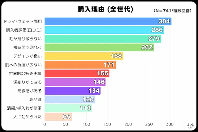 深剃り性能や販売実績、高級感といった製品の本質的な品質やブランドへの信頼性を重視。納得感のある選択を行う傾向が見られます。