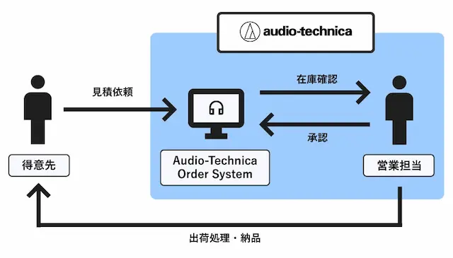 こうした背景のもと、オーディオテクニカ社は、営業現場の業務負荷を軽減し、受注業務の精度とスピードを向上させるため、クローズド型の法人向けECサイト「Audio-Technica Order System(ATOS)」を新規構築しました。本プロジェクトは単なるシステム導入に留まらず、営業担当者を事務作業から解放し、より戦略的・提案型の営業活動へ転換することを目的とした「業務改革(BPR)」の一環としても位置づけられています。