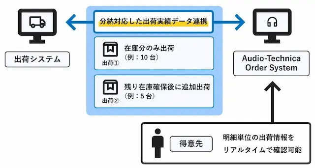 分納に対応した出荷実績連携で、リアルタイムな情報共有を実現