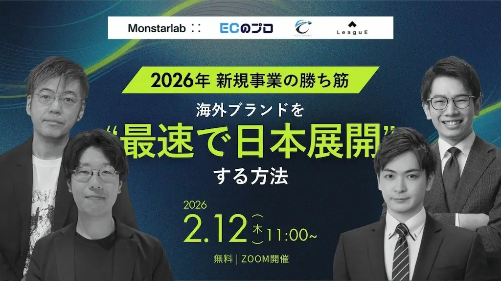 株式会社LeaguEは、4社共催のオンラインセミナー『2026年 新規事業の勝ち筋─ 海外ブランドを“最速で日本展開”する方法』を2026年2月12日(木)11時から開催いたします。
