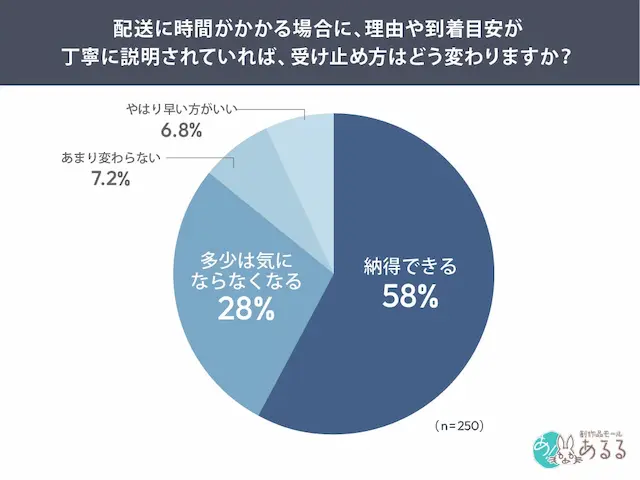 配送に時間がかかる場合でも、86.0%が「説明があれば受け止め方が変わる」と回答しました。
