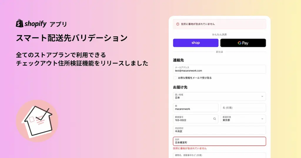 macaronwork合同会社は、Shopifyアプリ「スマート配送先バリデーション」にて新機能「チェックアウト住所検証」の提供を開始しました。これまでShopify Plus 限定だったチェックアウト画面での配送先住所チェックが、全てのストアプランで可能になります。