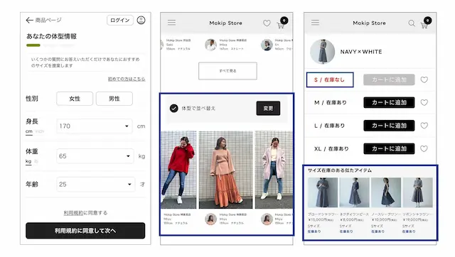 本サービスにより、サイズやカラーが欠品している場面でも“在庫がある似た商品”をその場で表示できるようにすることで、ユーザーが検討を中断せずに選択を続けられる導線を実現しています。これにより、気に入った商品が買えないことで発生していた離脱を防ぎ、スムーズな購入体験につながります。