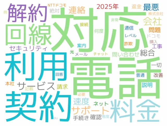 通信業は悪評・クレームが3番目に多い業種となりました。投稿内容を見ると、契約内容や料金体系に関する認識の違い、手続きの分かりにくさに起因する指摘が目立ちました。特に、契約変更や解約時の条件、請求内容に関する説明不足を背景とした不満が一定数確認されました。また、問い合わせ対応に関する指摘も見られ、解決までに時間を要したことや、案内の分かりづらさが不満につながっている様子がうかがえます。通信サービスそのものの品質というよりも、契約手続きや請求対応、サポート対応への関心や不満が集中している傾向が見られます。