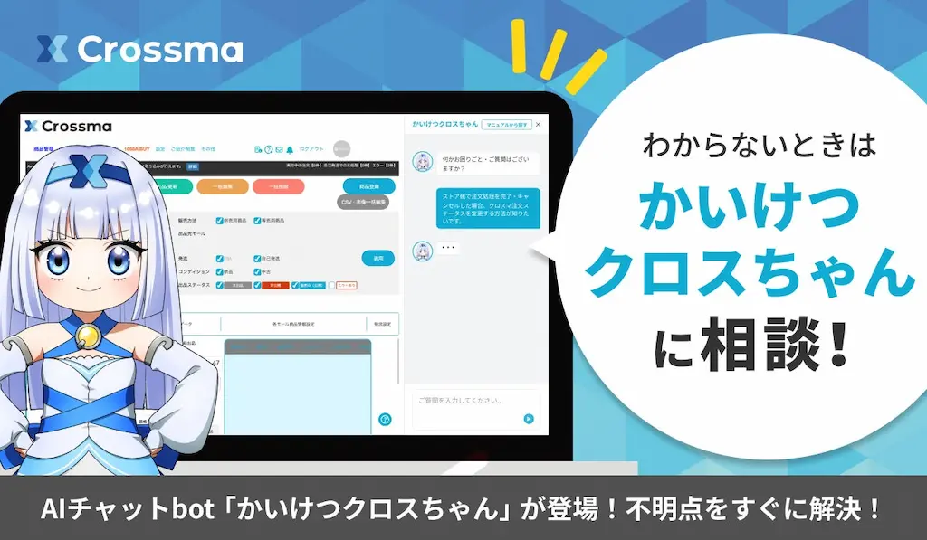 株式会社IZUMI(本社:東京都中央区京橋、代表:藤本卓治)が提供する「クロスマ」は、ネットショップ事業者の運営効率をさらに高める新機能として、AIチャットbot「かいけつクロスちゃん」をリリースいたしました。