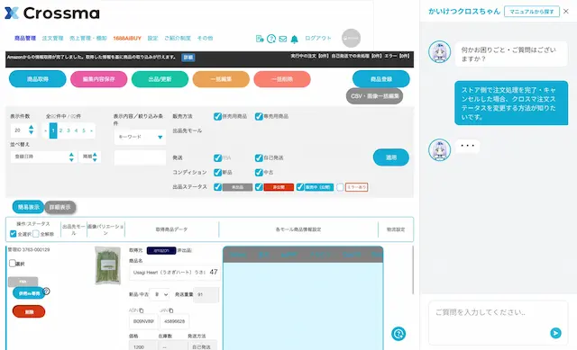 本機能の導入により、操作方法や仕様に関する不明点を24時間365日、その場で即時に解決することが可能になります。サポートの営業時間を待つ必要がなく、夜間や休日でも作業を止めることなく進められるため、利益に直結する「出品・販売」のスピードを加速させます。