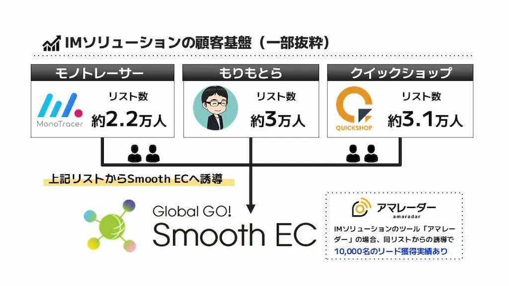 IMソリューションはEC業界における豊富な運営知見や顧客ネットワーク、マーケティングノウハウを有しています。サインポストはSmooth ECなどのツールの認知向上と市場獲得を図るために、IMソリューションを市場浸透とプロダクト高度化における戦略的協働パートナーとして位置付け、以下の施策を推進します。